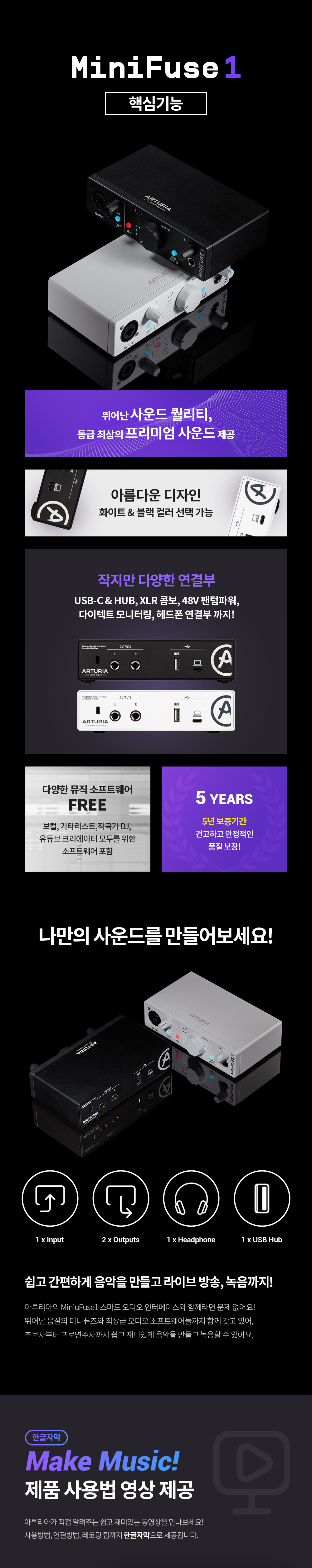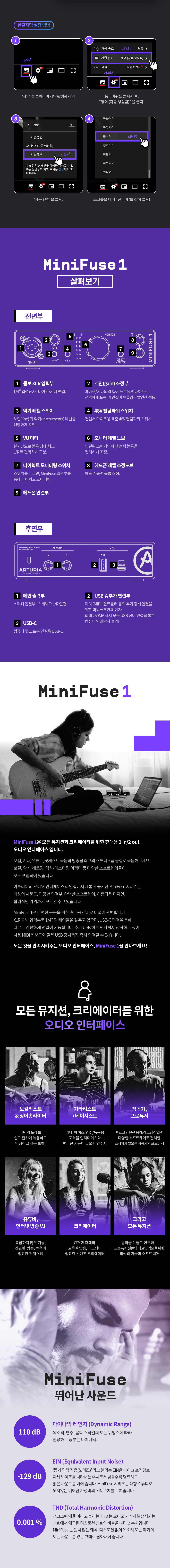 Arturia MiniFuse1 미니퓨즈1 아투리아 초소형 포터블 USB 오디오인터페이스 가성비 입문용 녹음장비