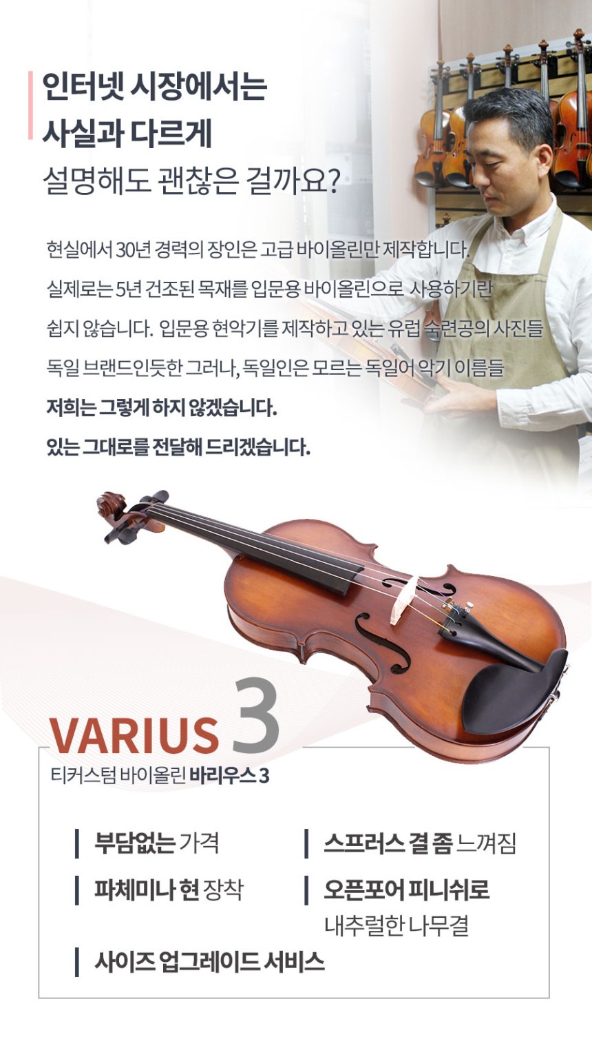티커스텀 입문용 바이올린 바리우스3 입문용 풀패키지