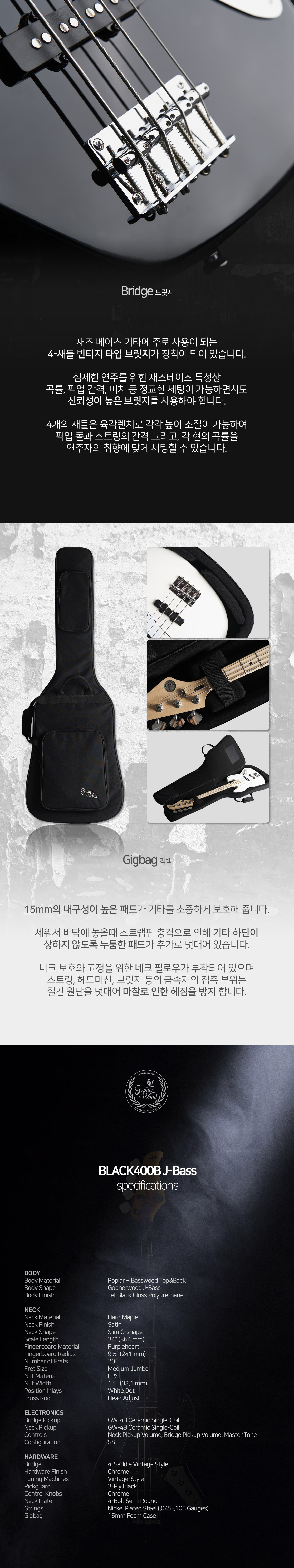 중학교 악기 동아리 방과후 고등학교 밴드부 입문용 베이스기타 (고퍼우드 BLACK400B)