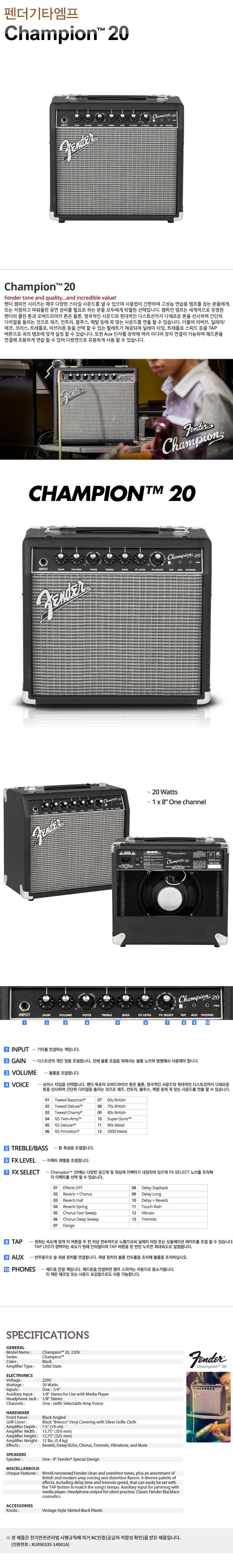 FENDER CHAMPION 20 펜더 기타 앰프 챔피언