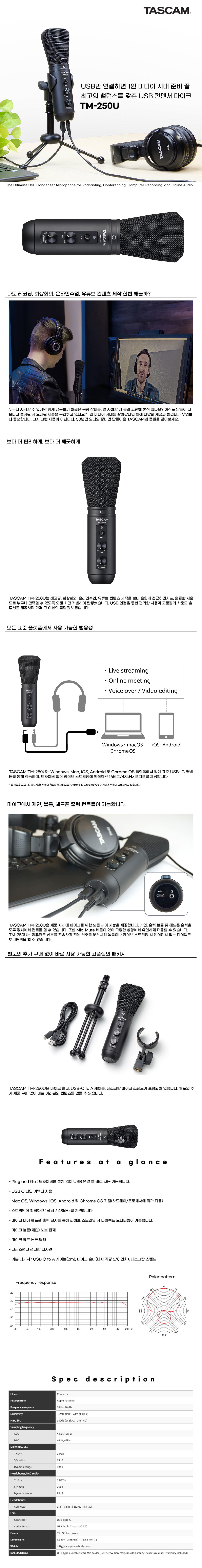 TASCAM TM-250U 타스캠 USB 콘덴서 마이크 영상 촬영 장비