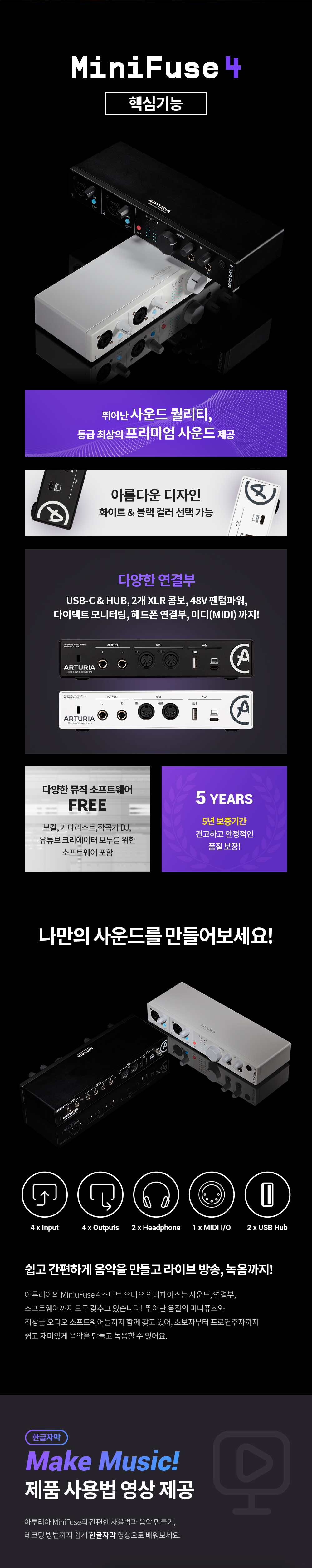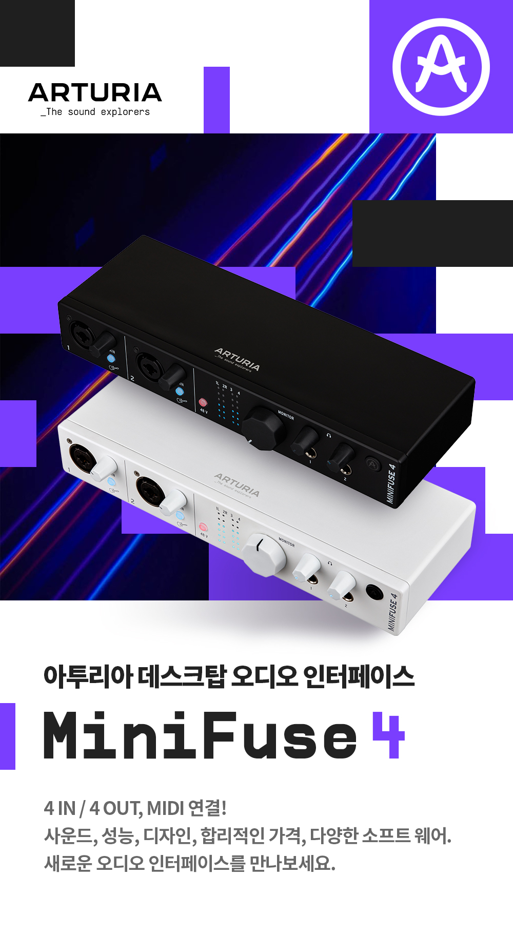 Arturia MiniFuse4 미니퓨즈4 아투리아 오디오인터페이스 4in 4out 온라인 강의 휴대용 미디 학교 녹음실