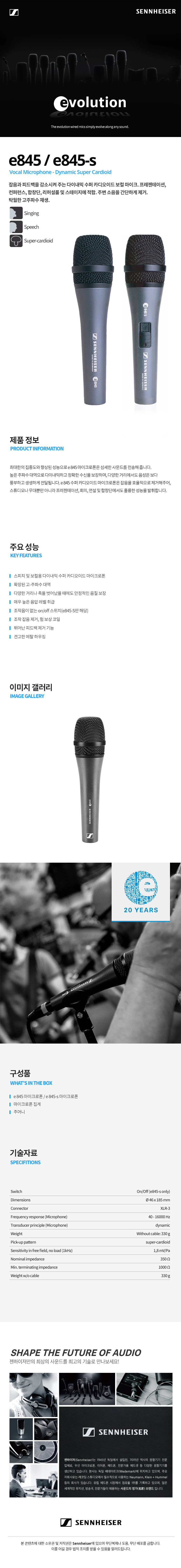 젠하이저 E845S 팝필터 스탠드 케이블 패키지 슈퍼 카디오이드 보컬용 학교 교회 방송실 선생님 장비 다이나믹 마이크