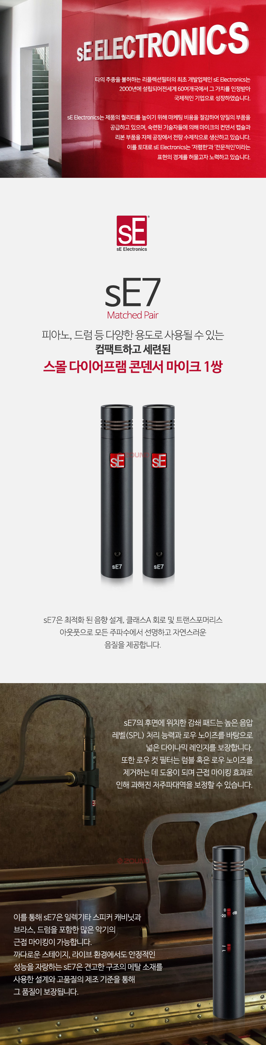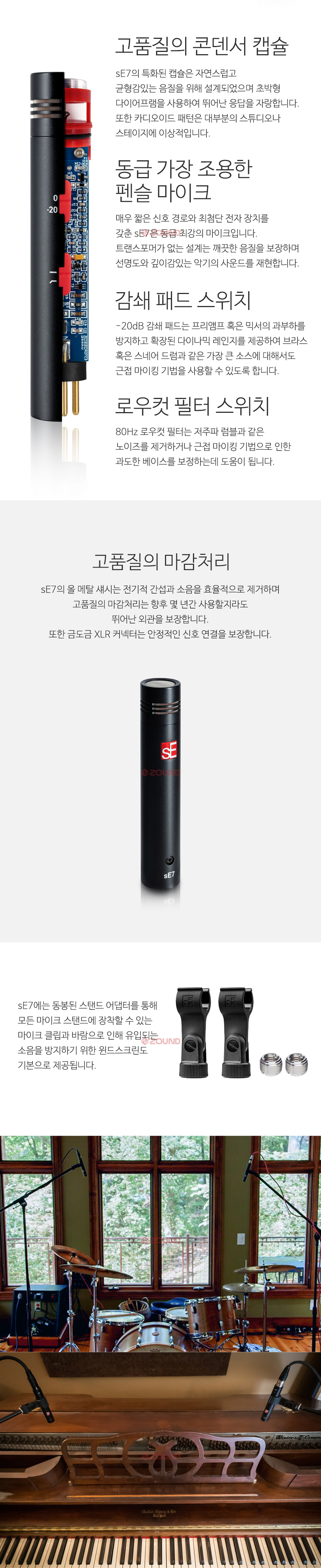 sE sE7 MP 다용도 펜슬형 콘덴서 마이크 Matched Pair 학교 밴드 드럼