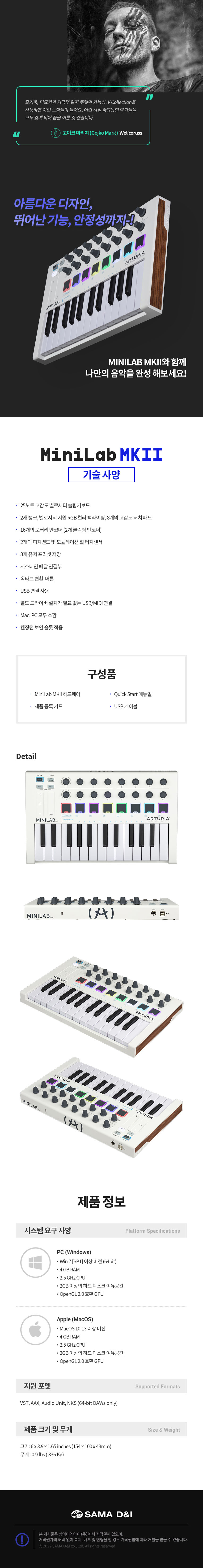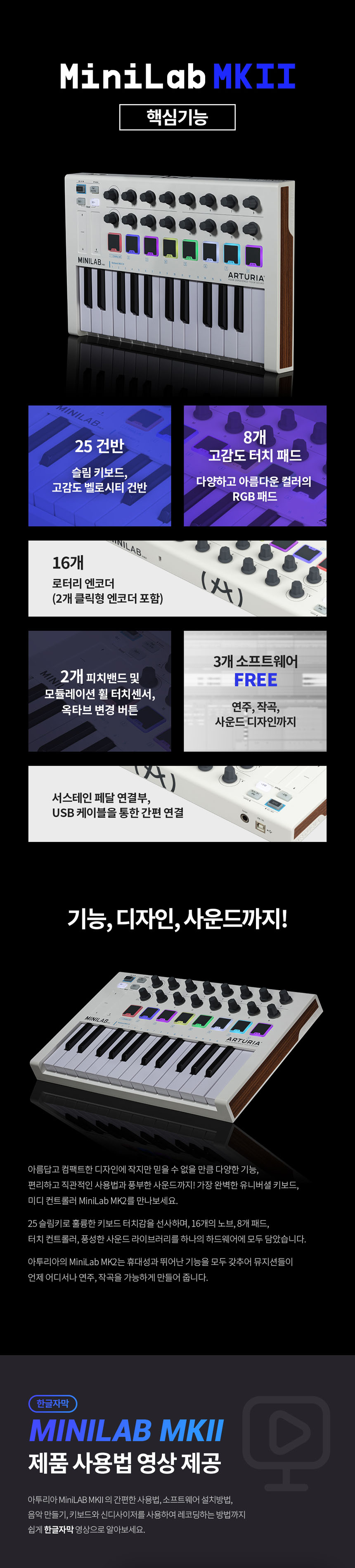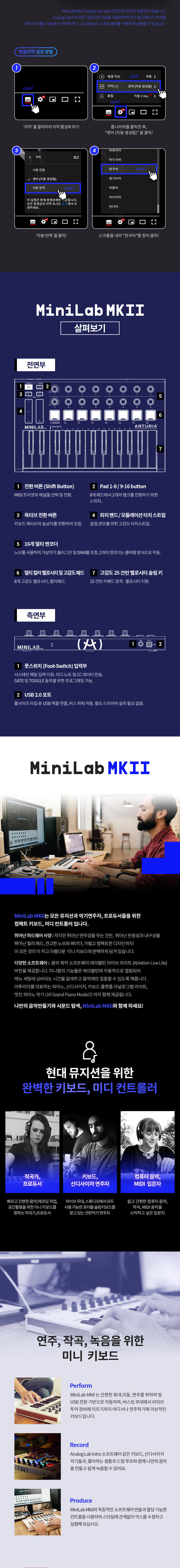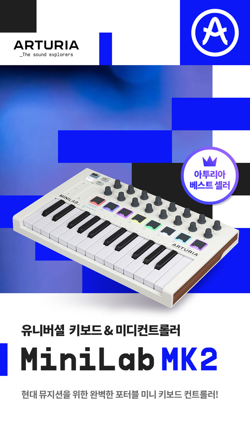 학교 축제 밴드 동아리 가성비 입문 마스터건반 Arturia MiniLab MKII 아투리아 미니랩MK2 포터블 마스터건반 미디컨트롤러